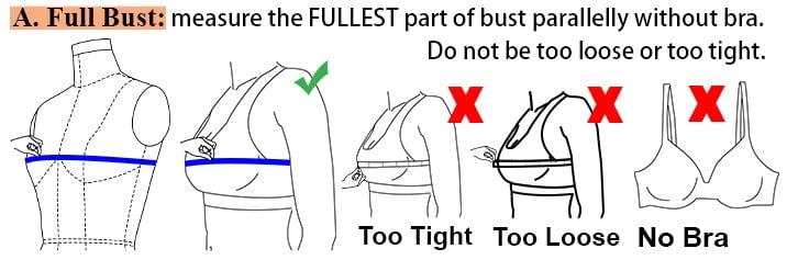 - Fitted clothing or undergarments you plan to wear with the dress